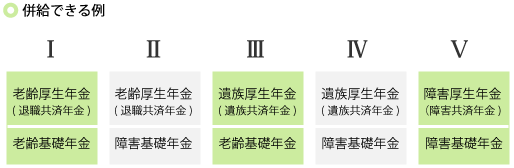 なお、同一の給付事由による障害厚生年金(障害共済年金)と障害基礎年金などの併給調整の例外となる例(2以上の年金と同時に受給(併給)できる場合)があります。