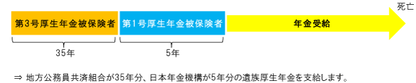 年金受給者が死亡した場合の遺族厚生年金の給付(長期要件と言います。)は、加入していた被保険者期間の種類ごとに、年金保険者がお支払いします。
